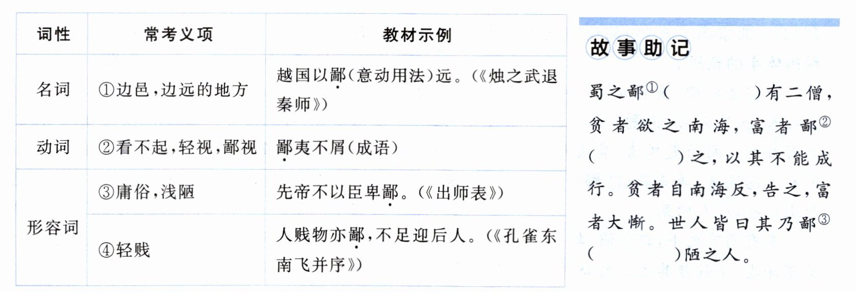 2.①边邑 ②看不起,轻视,鄙视 ③庸俗,浅陋