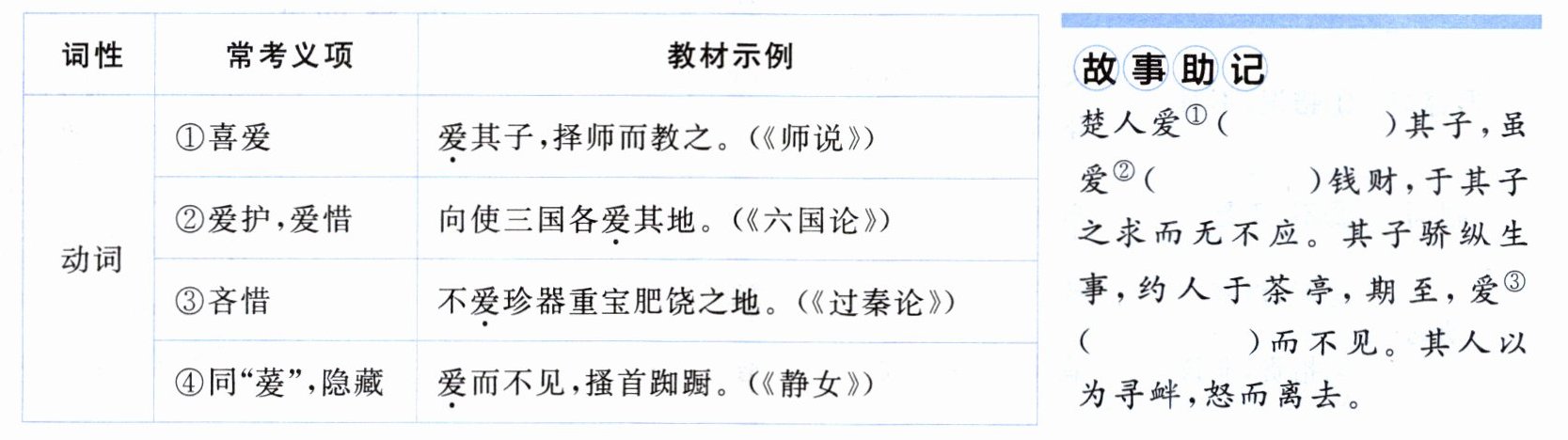1.①喜爱 ②吝惜 ③同“菱”,隐藏