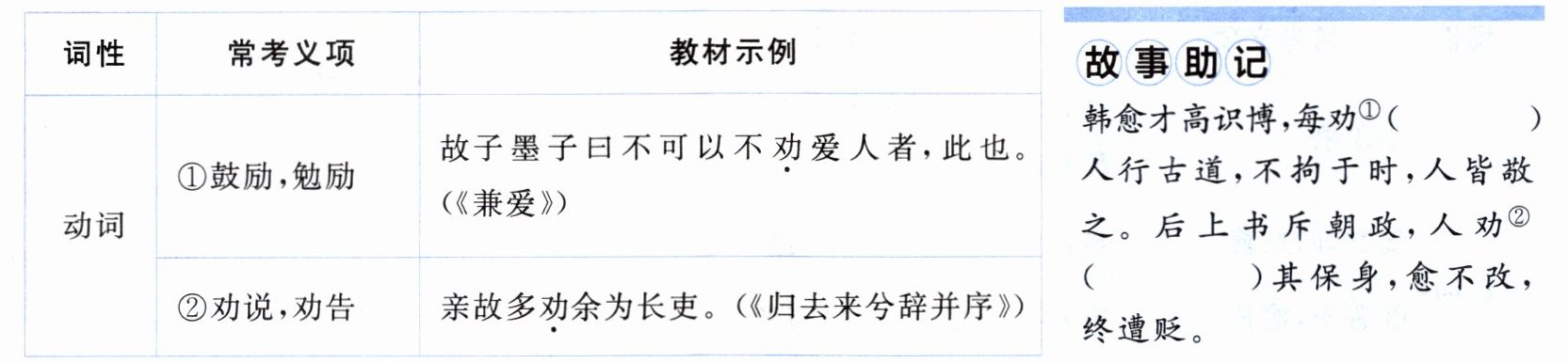 ①离开 ②到 ③屡次,多次 ④归附 ⑤鼓励,勉励