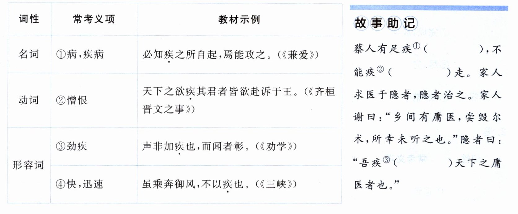 5.①病,疾病 ②快,迅速 ③憎恨