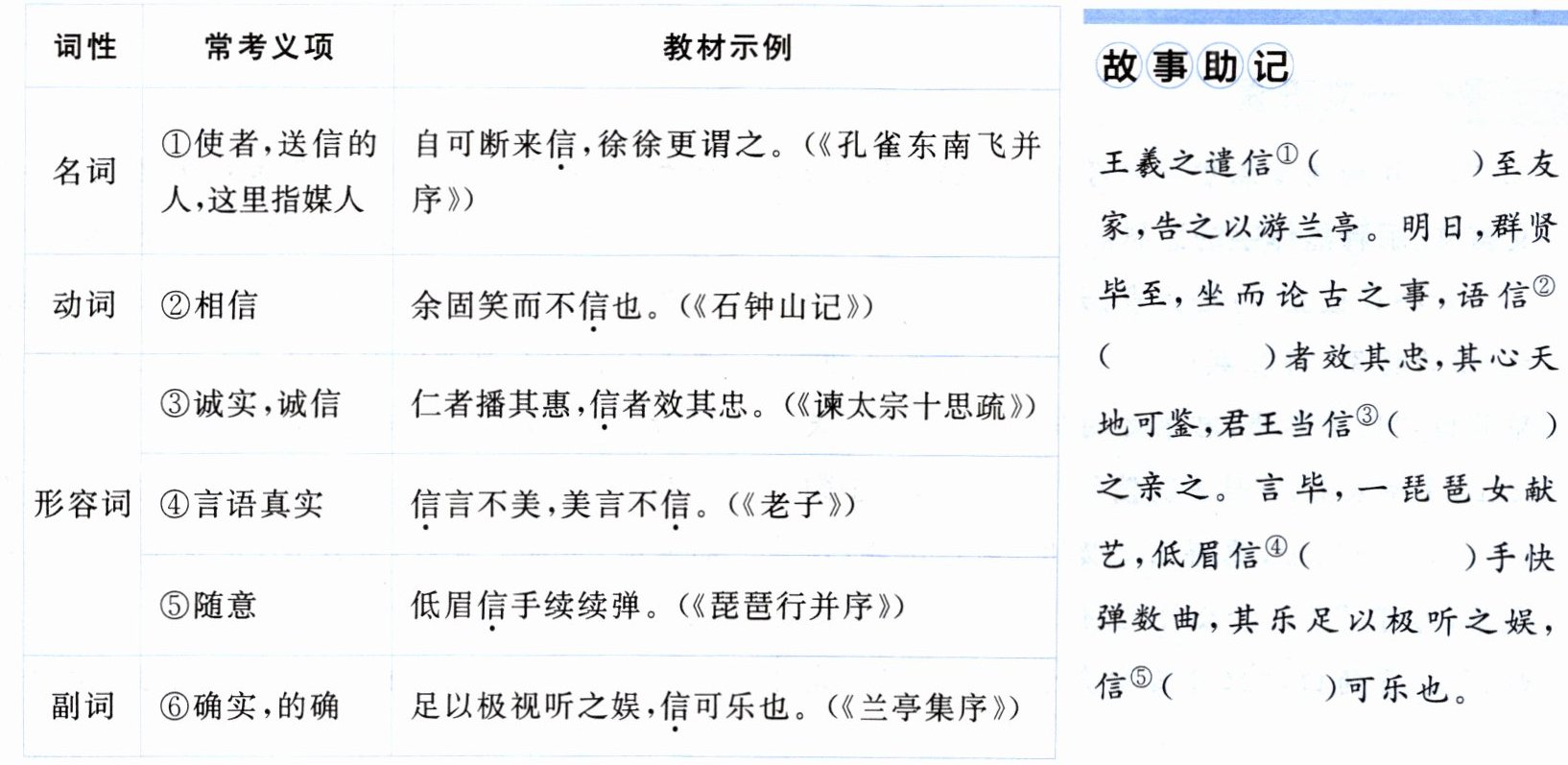 3.①使者,送信的人 ②诚信 ③相信,信任 ④随意 ⑤确实,的确