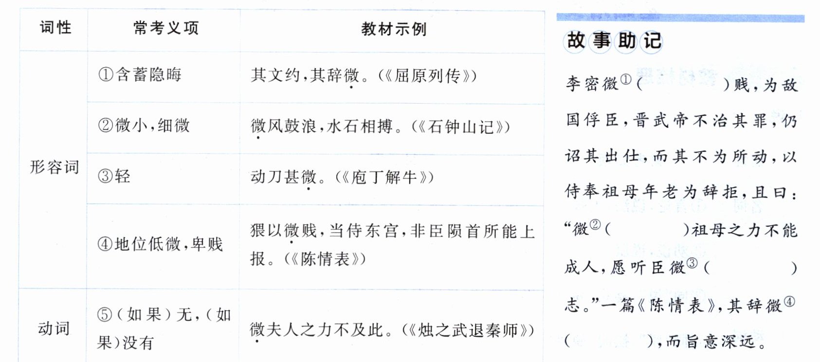 4.①地位低微 ②(如果)没有 ③微小 ④含蓄隐晦