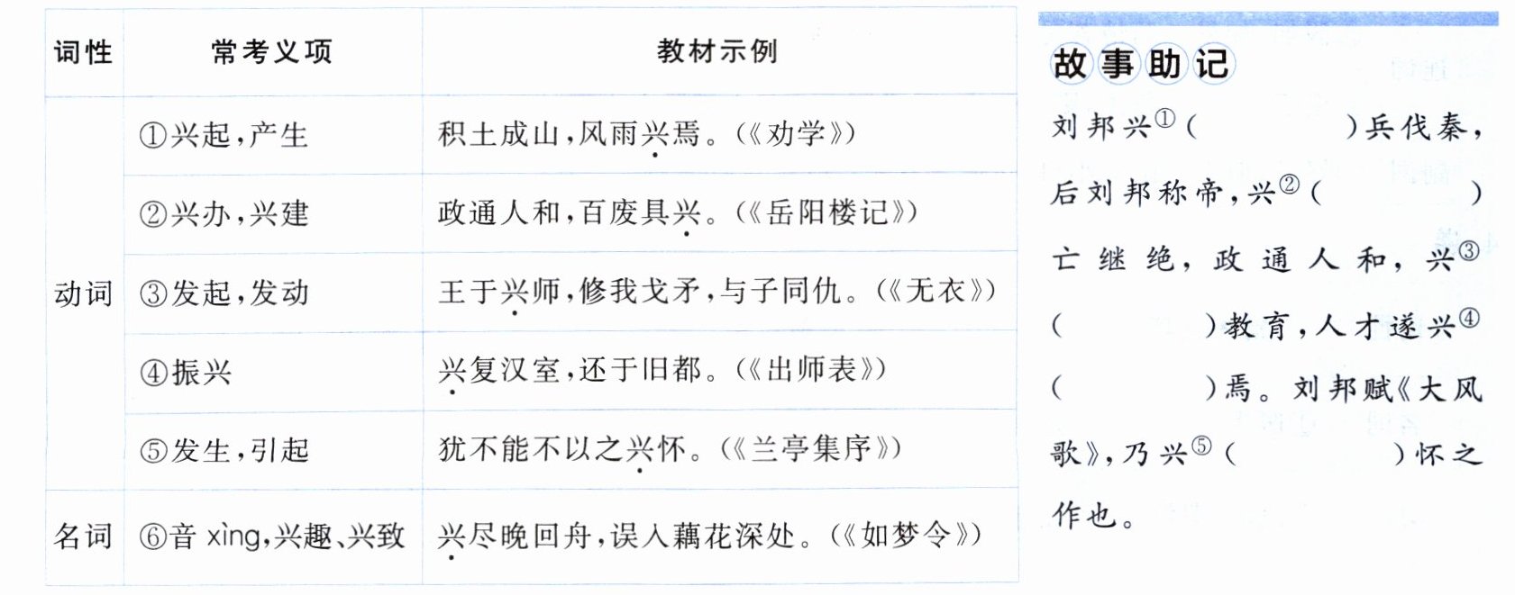 1.①发起,发动 ②振兴 ③兴办 ④产生 ⑤引起