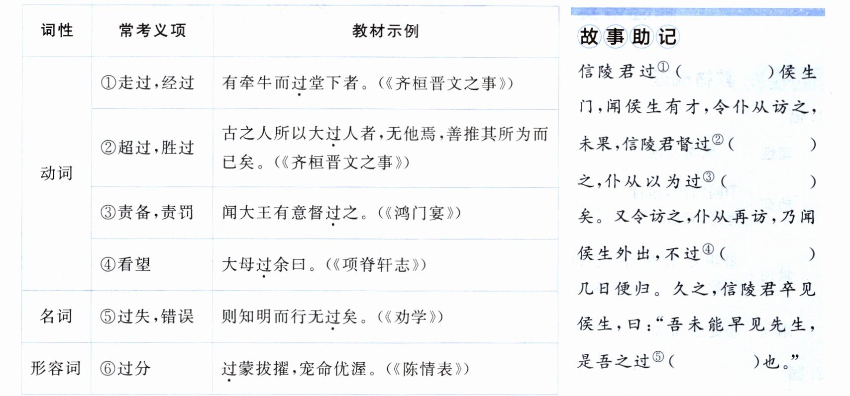 5.①经过 ②责备,责罚 ③过分 ④超过 ⑤过失,错误