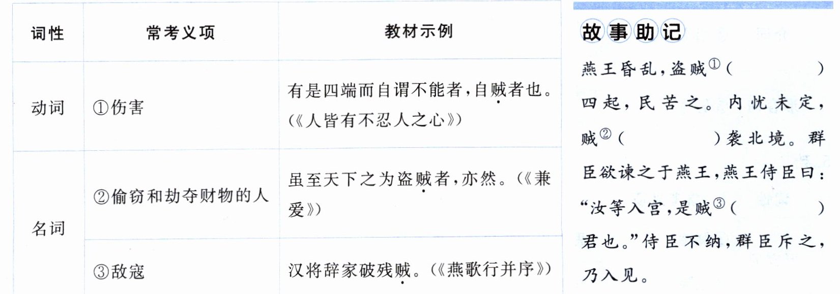 2.①偷窃和劫夺财物的人 ②敌寇 ③伤害