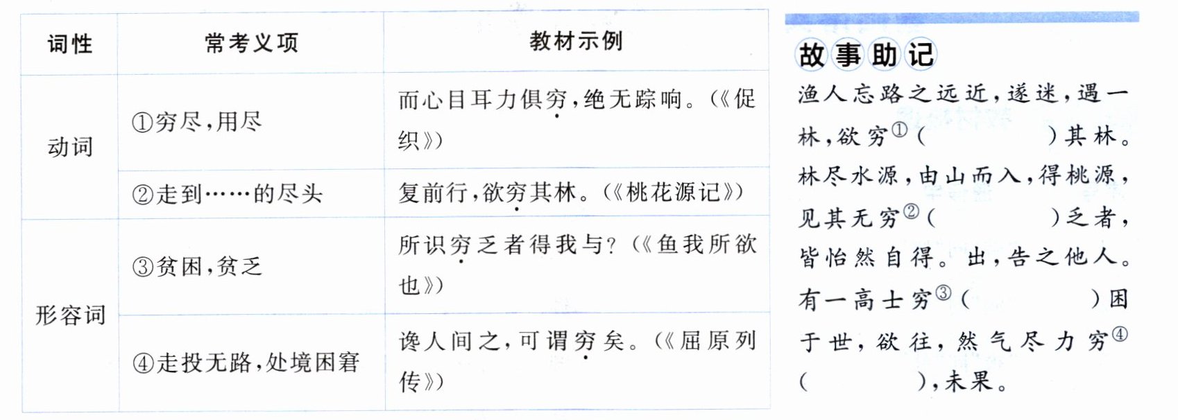 3.①走到……的尽头 ②贫困 ③走投无路,处境困窘 ④用尽,穷尽