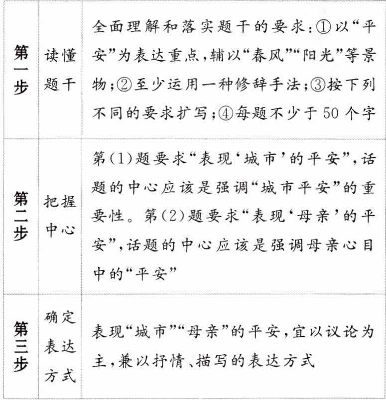 以“平安”为表达重点,辅以“春风”“阳光”等景物,至少运用一种修辞手法,按下列不同的要求扩写,每题不少于 50 个字。