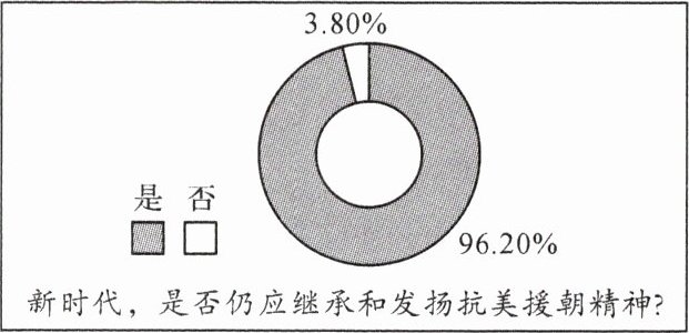 @@【示例】绝大部分人认为仍应继承与发扬抗美援朝精神,大部分人认为抗美援朝赋予了我们心怀祖国、坚持正义、顽强乐观的精神财富。(3 分,意对即可)
