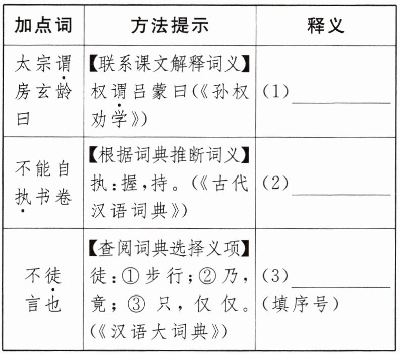 A@@对……说@@拿着@@③@@君与臣、父与子的道理,政令教化的道理,都在书里。@@不学习,(遇到事情就像)面对一堵墙一样一无所知,处理事情只会感到麻烦。@@后果是一无所知,处处碰壁,处理事情会遇到许多麻烦。从中可以看出唐太宗是一个善于自省、重视读书学习的君主。