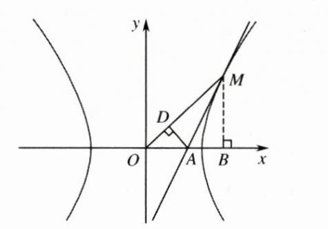 8. 如图,已知M为双曲线E:$\frac{x^{2}}{a^{2}}-\frac{y^{2}}{b^{2}}=1$($a>0$,$b>0$)上一动点,过M作双曲线E的切线交x轴于点A,过点A作$AD\perp OM$于点D,则$|OD|\cdot|OM|$的值是 ( )
