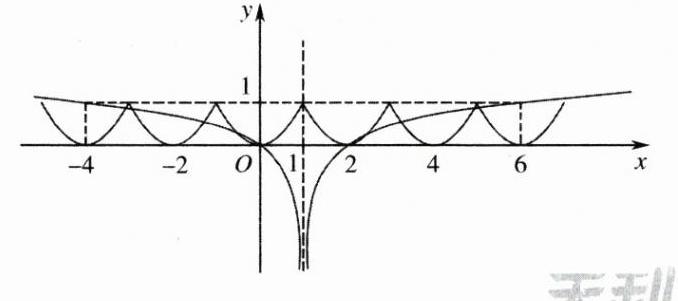 f(5−x),当x∈[0,1]时,f(x)=x².设函数g(x)=logs|x−1l,则下列结论正确的是(