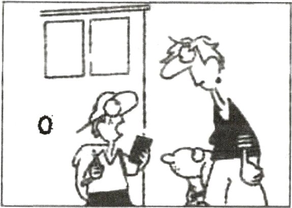 (描述图片)This is a funny but inspiring cartoon, in which a mother is sending her son to school(非限制性定语从句)¹. However, the son puzzles, “Why am I going to school if my phone already knows everything?”