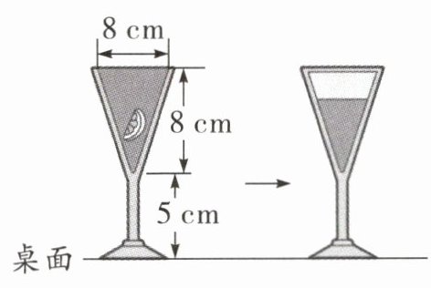 12. 如图是一个顶部为近似圆锥形的高脚杯。杯中放着一块柠檬,柠檬的体积为$\frac{112}{3}\pi$ cm³,在杯中倒满水后,再把柠檬拿出来,此时水面半径是2 cm,求此时杯中水面高度到桌面的距离。