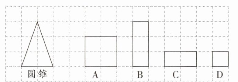 5. 妙妙在方格纸上绘制了她从正面分别看到的1个圆锥和4个圆柱的形状,图中圆锥的体积和圆柱( )的体积相等。(每个小方格边长为1 cm)