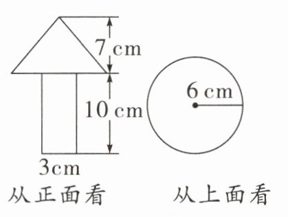 $3.14\times(3\div2)^{2}\times10+\frac{1}{3}\times3.14\times6^{2}\times7 = 334.41(\text{cm}^{3})$