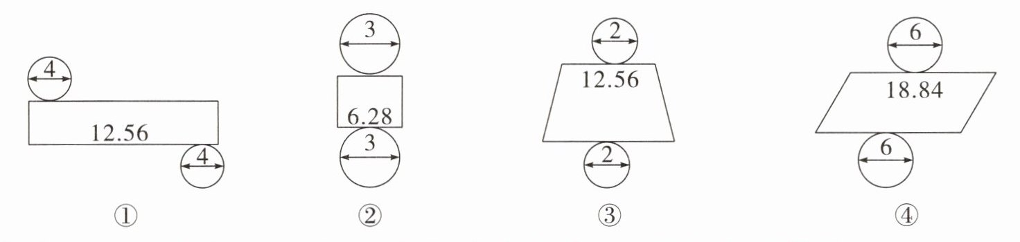 2. 下面这些图形中,是圆柱展开图的是( )。(填序号)