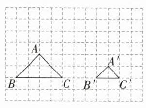 例 1 按照 1 : 2 的比画出下图三角形 $ABC$ 缩小后的三角形 $A'B'C'$。