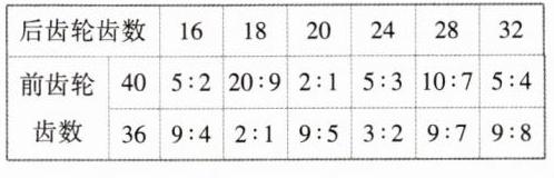 我是后齿轮,分别有32,28,24,20,18,16个齿 我是前齿轮,分别有40和36个齿