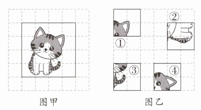 图①先向右平移 3 格,再向下平移 1 格能“还原”到图甲中的位置。