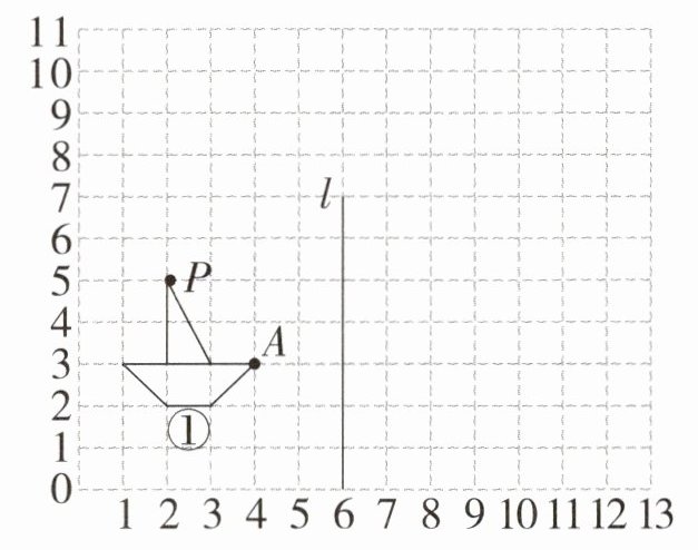 (2)作出图①关于直线l的轴对称图形后,再将所得图形向上平移3格得到图②。