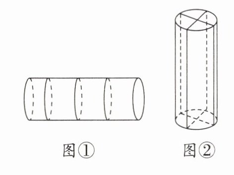 11. 如图①,将一根圆柱形木棒切成 4 个小圆柱,它的表面积增加 169. 56 cm²,如图②,如果沿着底面直径平均切成 4 份,它的表面积增加 192 cm²,原来这根木棒的表面积是多少平方厘米?