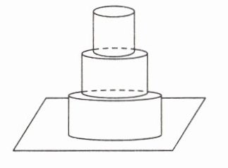 9.(P7 第 7 题变式)如图是一个三层蛋糕坯,每层半径分别为 20 cm、15 cm、10 cm,每层的高均为 10 cm。如果给蛋糕坯的表面涂抹一层奶油(底部除外),求需涂奶油部分的面积。