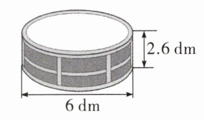 $3.14×(6÷2)^{2}×2 = 56.52(dm^{2})$ $3.14×6×2.6 = 48.984(dm^{2})$答:需要铝皮 48.984 平方分米,羊皮 56.52 平方分米。