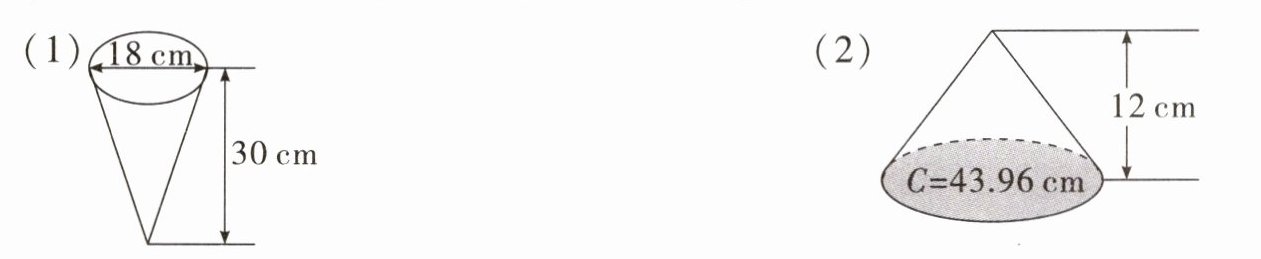 $\frac{1}{3}×3.14×(18÷2)^2×30 = 2543.4(cm^3)$@@$43.96÷3.14÷2 = 7(cm)$