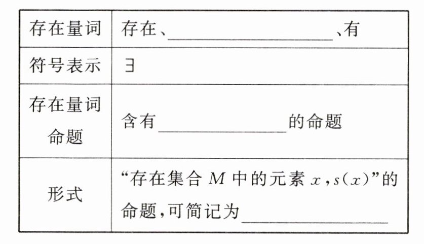 (2)存在量词命题中的存在量词则表明给定范围内的对象有例外,强调“个别、部分”.