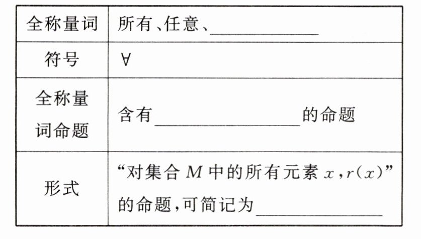 (1)全称量词命题中的全称量词表明给定范围内所有对象都具有某一性质,无一例外,强调“整体、全部”.