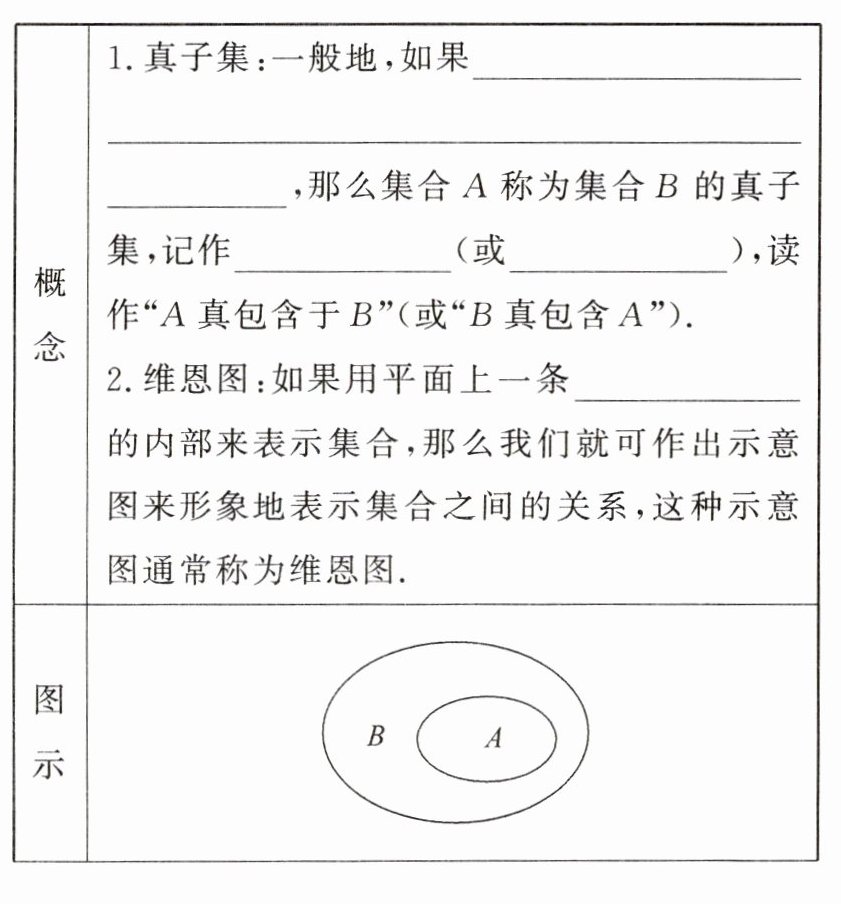 1. 集合 A 是集合 B 的子集,并且 B 中至少有一个元素不属于 A $A\subsetneqq B$ $B\supsetneqq A$ 2. 封闭曲线