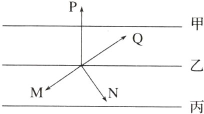 1. D 2. B 第1题,图中表示北半球,甲、乙、丙代表等压线,P垂直于等压线,是水平气压梯度力,Q相对于水平气压梯度力来说向右偏转,且与等压线斜交,应是风向;M与风向相反,应该是摩擦力;N与风向垂直,应该是地转偏向力。第2题,若图中等压线数值不变且分布在高空,则水平气压梯度力不变;摩擦力变小;摩擦力变小,风速变快;风速变快,地转偏向力变大。