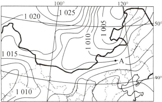 (3)推测图中A点的风向,并在图中用箭头将其画出。(地理实践力)