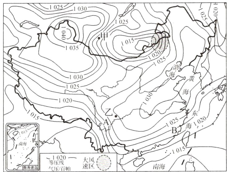 (2024·武汉高一检测)下图为2023年10月9日6时某区域海平面气压分布图,据此完成3~5题。