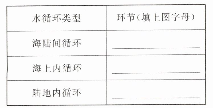 >按图索骥 填写下图中的部分水循环环节的名称。