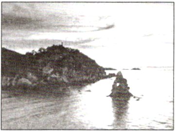 (2023.长春高一检测)下图为“石老人”景观图,石老人是青岛某地距海岸百米处的石柱,形如老人坐于碧波中而得名。2022年10月3日,石老人上半部分突然坍塌。据此完成1、2题。