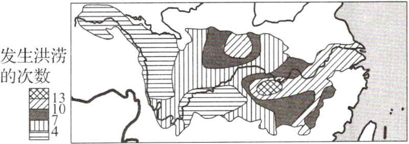 1.影响长江流域发生洪涝次数最多区域与最少区域差异的主要因素是( )