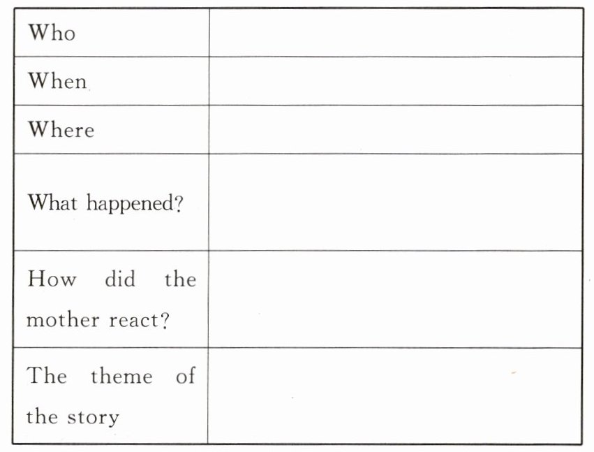 It was my mother’s birthday, and I decided to (3)__________ her with home - made scrambled eggs, but they (4)__________. After knowing what happened, my mother (5)__________ and said they weren’t bad!