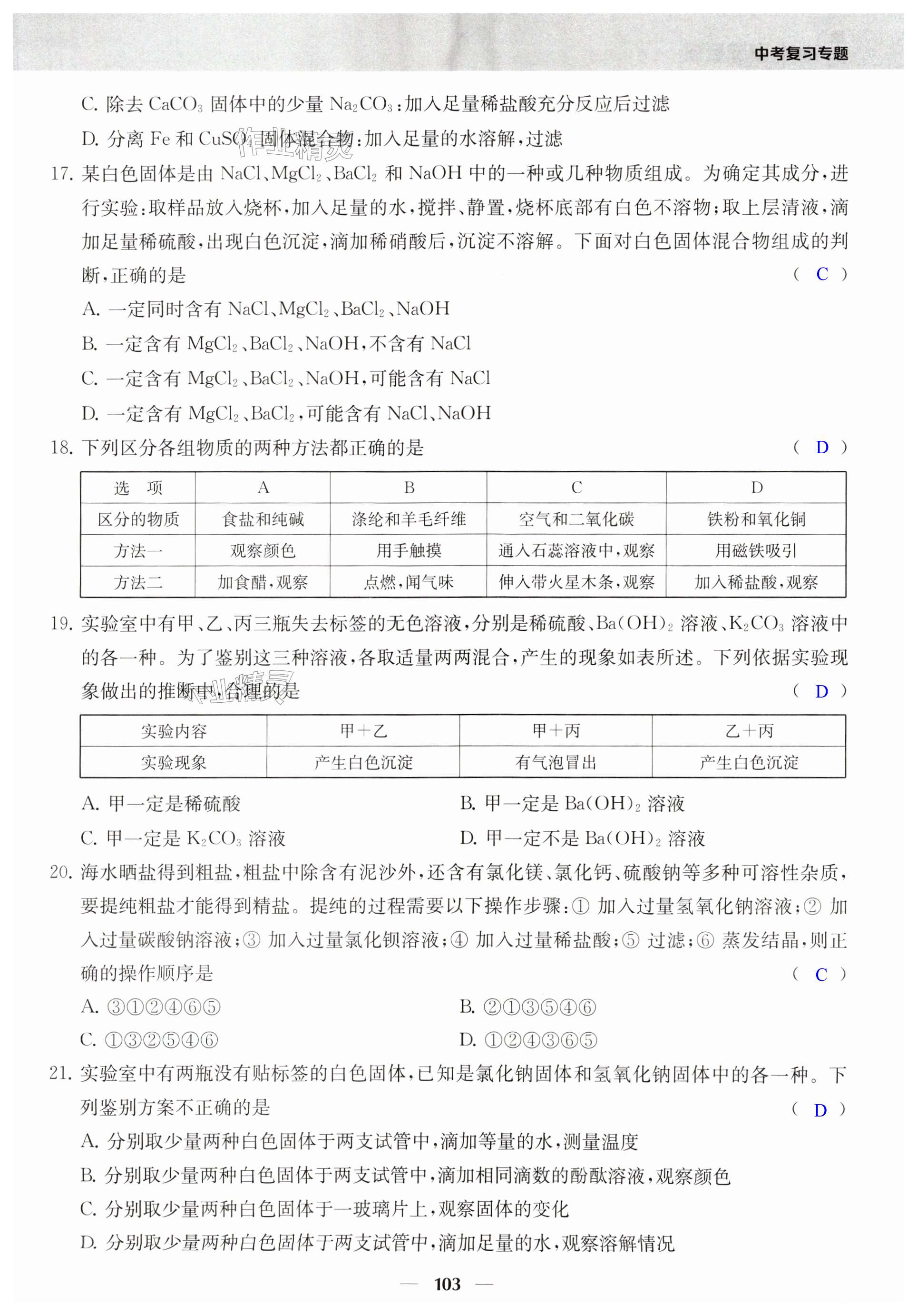 注:目前有些书本章节名称可能整理的还不是很完善,但都是按照顺序排列的,请同学们按照顺序仔细查找。练习册 2025年综合素质随堂反馈九年级化学下册 答案主要是用来给同学们做完题方便对答案用的,请勿直接抄袭。