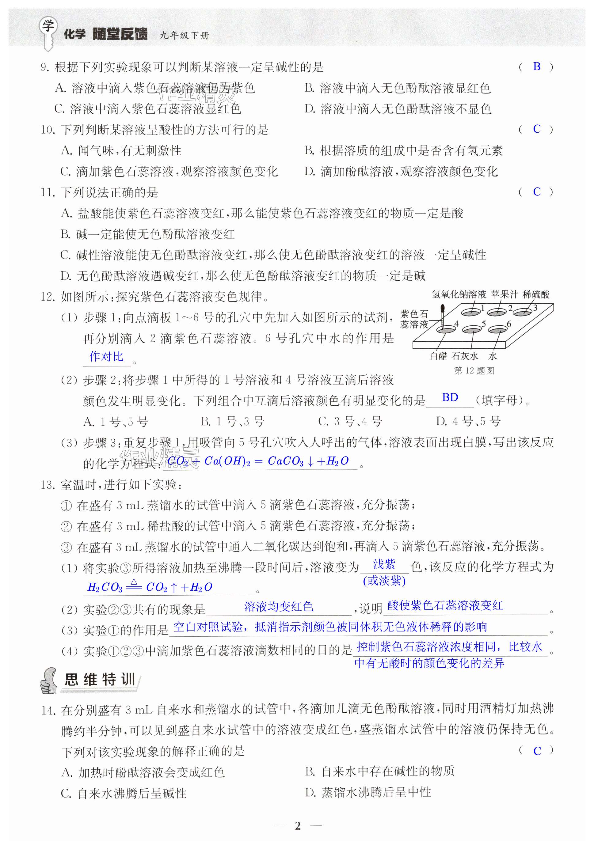 注:目前有些书本章节名称可能整理的还不是很完善,但都是按照顺序排列的,请同学们按照顺序仔细查找。练习册 2025年综合素质随堂反馈九年级化学下册 答案主要是用来给同学们做完题方便对答案用的,请勿直接抄袭。