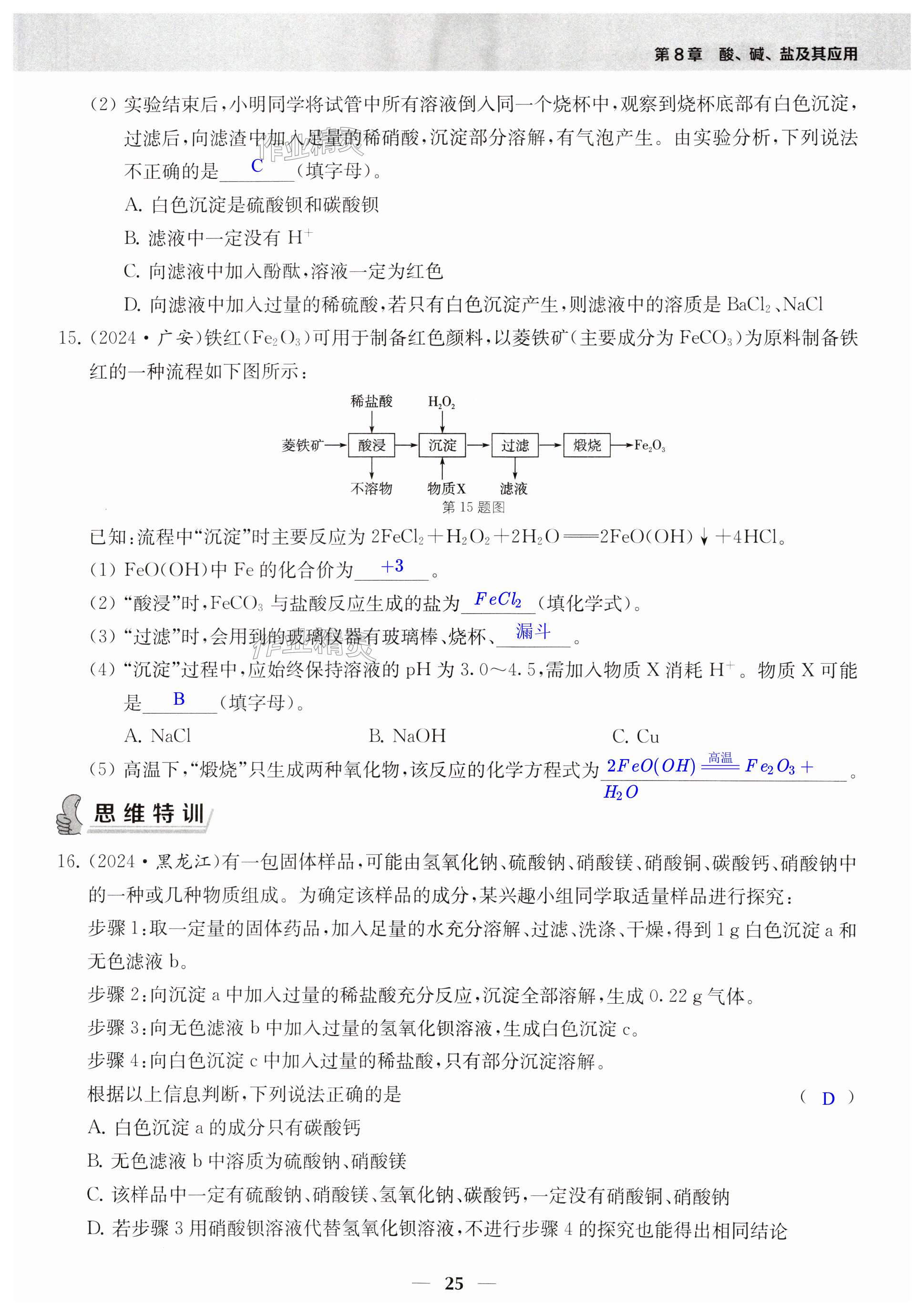 注:目前有些书本章节名称可能整理的还不是很完善,但都是按照顺序排列的,请同学们按照顺序仔细查找。练习册 2025年综合素质随堂反馈九年级化学下册 答案主要是用来给同学们做完题方便对答案用的,请勿直接抄袭。