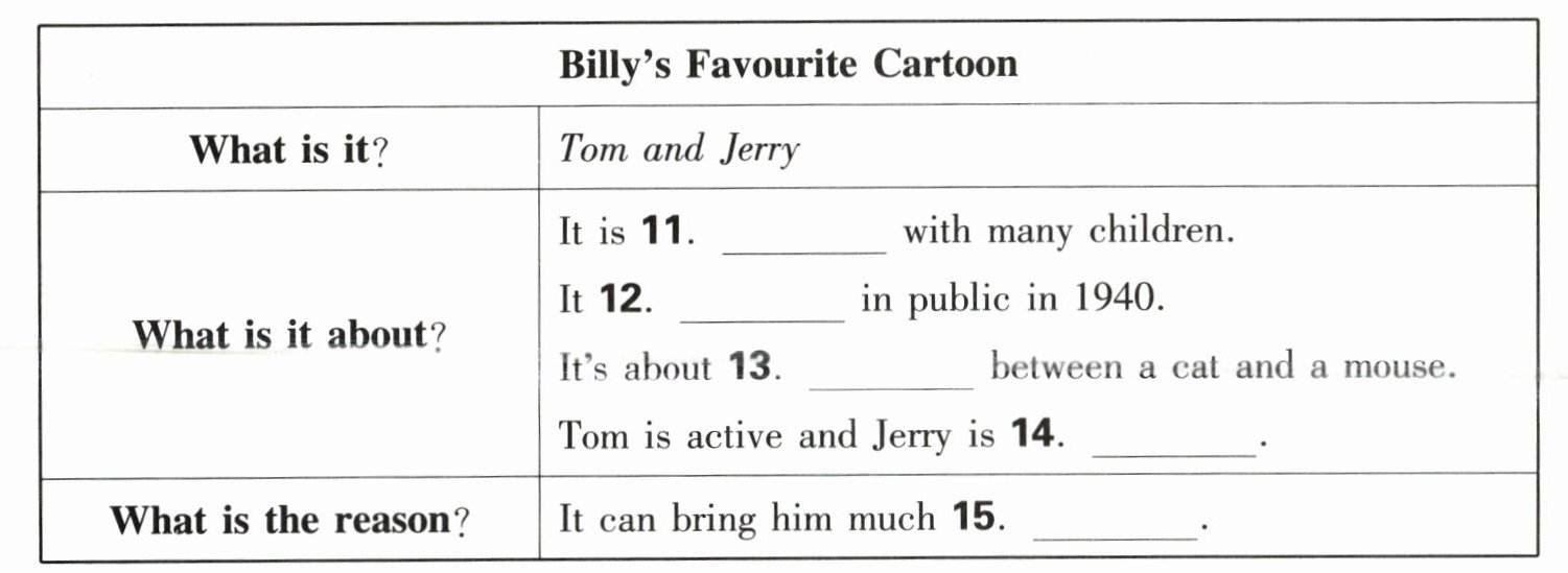 你将听到一篇短文,请根据短文内容,写出下面表格中所缺的单词,每空仅填一个单词。短文读两遍。