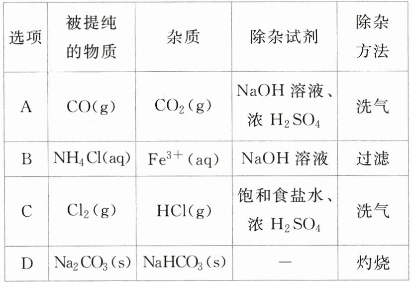 7.(2023·海南卷)下列气体除杂(括号里为杂质)操作所选用的试剂合理的是 ( )