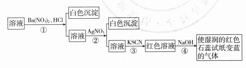 4. 某同学为检验某溶液中是否含有NH₄⁺、SO₄²⁻、Cl⁻、Fe³⁺等离子,进行了下图所示的实验操作。下列由该实验得到的结论正确的是 ( )