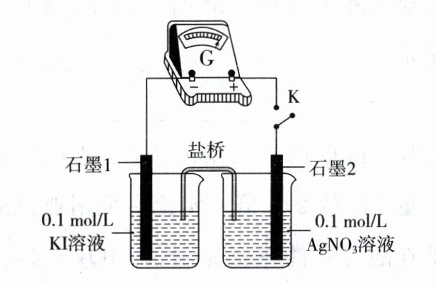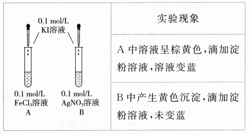 2Fe³⁺ + 2I⁻ = 2Fe²⁺ + I₂@@KNO₃@@正@@Ag⁺ + e⁻ = Ag@@强@@1×10⁻⁸@@向0.1 mol/L KNO₃溶液中滴加2~3滴淀粉KI溶液,再滴加少量浓硫酸(或硝酸),调节溶液pH = 6,若溶液变蓝,则说明硝酸有影响,若溶液不变蓝,则说明硝酸无影响