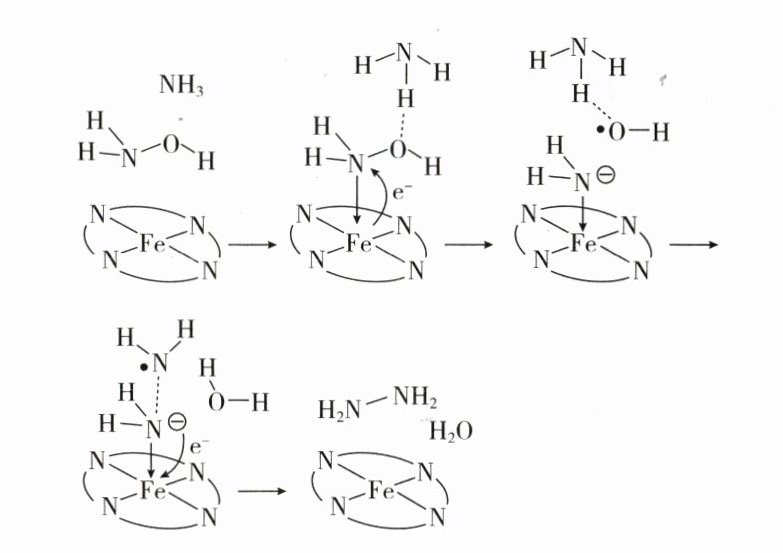 21.(2023·新课标卷)“肼合成酶”以其中的Fe²⁺配合物为催化中心,可将NH₂OH与NH₃转化为肼(NH₂NH₂),其反应历程如图所示。