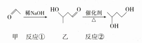 D [1,3 - 丁二醇中含有2个羟基,能与水分子形成氢键,具有良好的吸湿性,可用作化妆品的保湿剂,A正确;甲含醛基,乙含醛基、羟基,都能与酸性$KMnO_{4}$溶液反应,B正确;反应②中—CHO转化为—$CH_{2}OH$,为加成反应,C正确;甲、乙均含有醛基,不能用银氨溶液或新制氢氧化铜鉴别,D错误。]