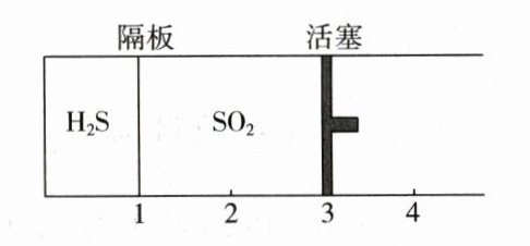 15. (2023·重庆缙云教育联盟高三二模)$t$ ℃时,在密闭容器的两个区域中分别充入了H$_{2}$S和SO$_{2}$,容器中的隔板固定在1处,充入1 mol SO$_{2}$气体后,无摩擦且可滑动的活塞位于3处(如图所示),抽出隔板后,在密闭容器里发生反应:2H$_{2}$S(g)+SO$_{2}$(g)$\xlongequal{\;\;}$3S(s)+2H$_{2}$O(l),充分反应后容器内的压强为零(不考虑S、H$_{2}$O所占的体积及水蒸气产生的压强),下列说法不正确的是 ( )