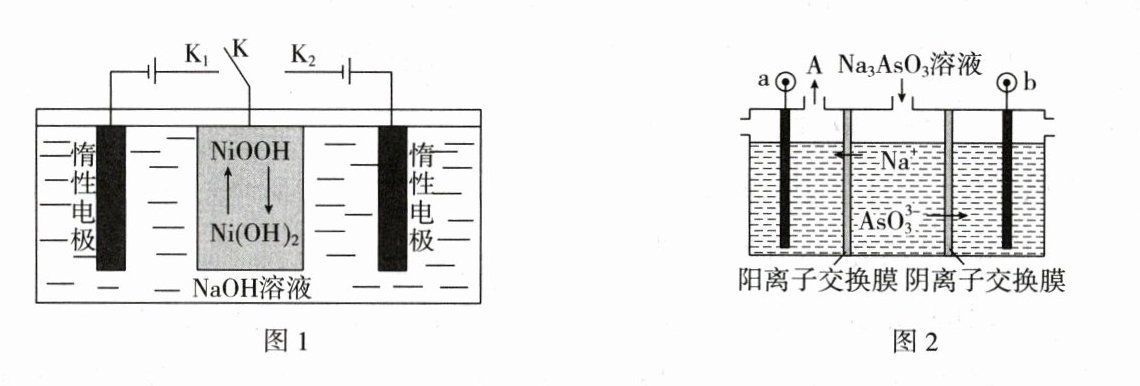 K₁@@NiOOH + e⁻ + H₂O = Ni(OH)₂ + OH⁻@@96@@负@@AsO₃³⁻ - 2e⁻ + H₂O = AsO₄³⁻ + 2H⁺@@阳离子@@2H₂O + 2e⁻ = H₂↑ + 2OH⁻@@4 mol