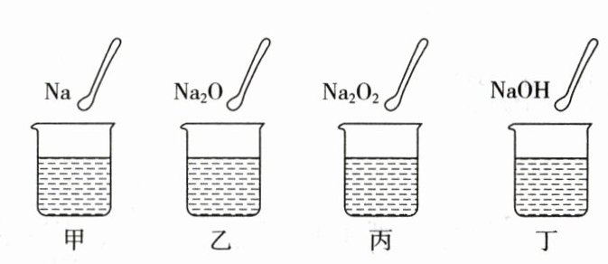 18. (2023·重庆缙云教育联盟高三二模)如图所示,甲、乙、丙、丁四个烧杯中分别盛有$100\ mL$蒸馏水,然后分别放入$0.01\ mol\ Na$、$0.01\ mol\ Na_2O$、$0.01\ mol\ Na_2O_2$、$0.01\ mol\ NaOH$,待固体完全溶解,则四个烧杯中溶液的质量分数的大小顺序为 ( )
